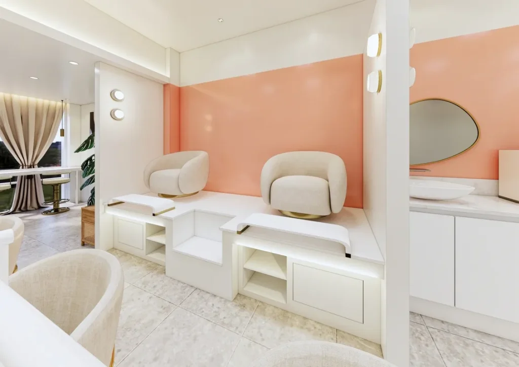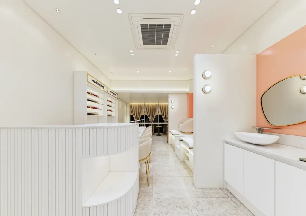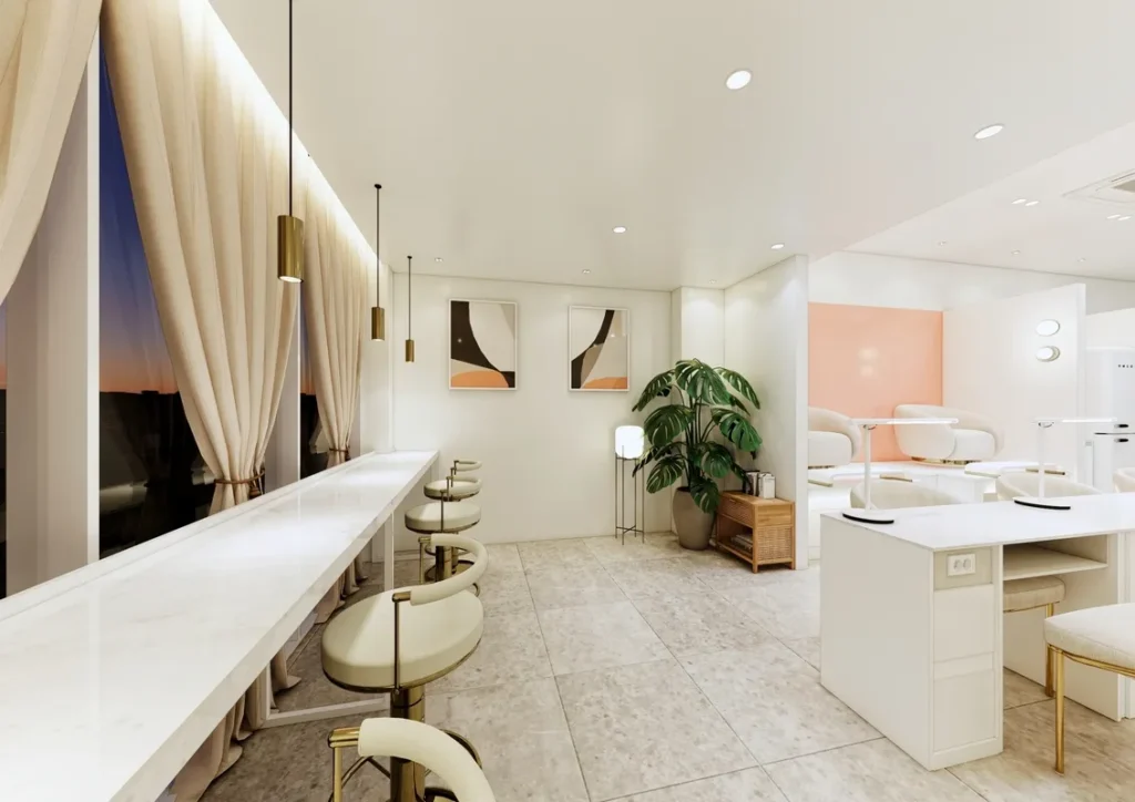 5. 네일샵설계 & 인테리어 고객 동선, 작업 효율, 브랜드 이미지 반영이 핵심입니다. 네일샵인테리어설계와 네일샵3D설계를 통해 미리 시공 결과를 확인하면 예산 낭비와 수정 비용을 크게 줄일 수 있어요.