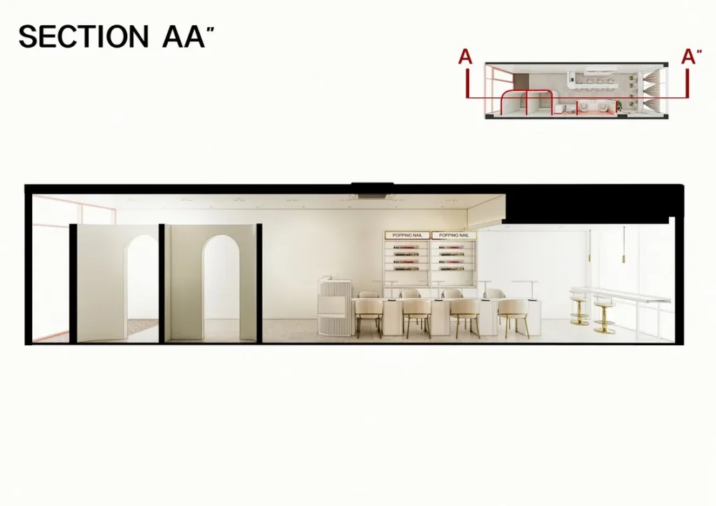 투시도 이해하기 어려운 공간감을 체감할 수 있도록 네일샵설계 작업물의 3D 영상을 함께 제작했습니다. 네일샵/뷰티샵 설계_VIDEO