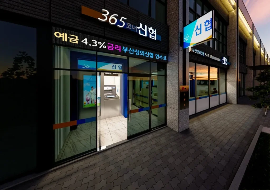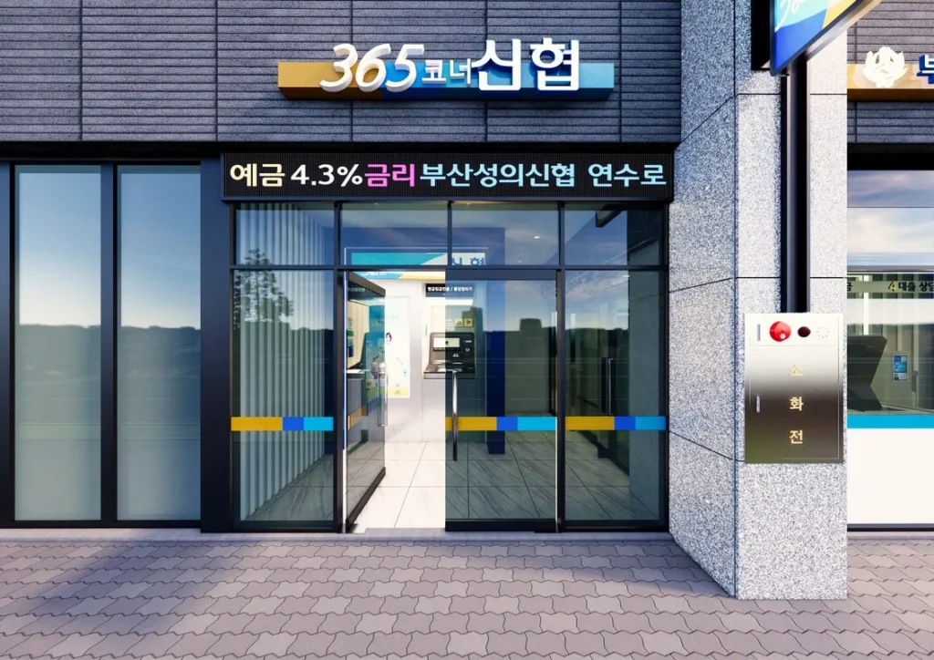 신협을 상징하는 포인트 색상의 “스크린루버”